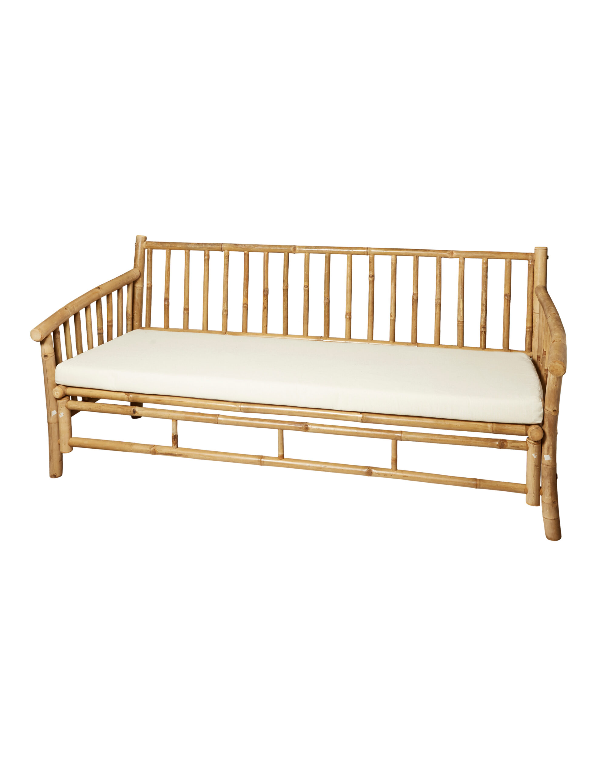 Rigtig cozy sofa, der passer super godt ind i sommerhus stemningen eller på terrassen. Skaber god stemning. Hynden er 9cm høj og stoffet er fremstillet af bomuld.