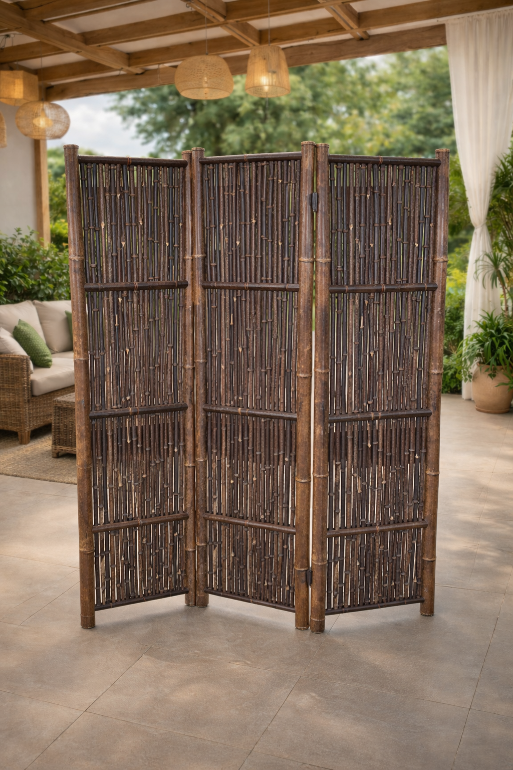 En flot og rolig afskærmning, der bringer et strejf af natur og asiatisk stemning ind i haven eller i huset, hvis den bruges indendørs.