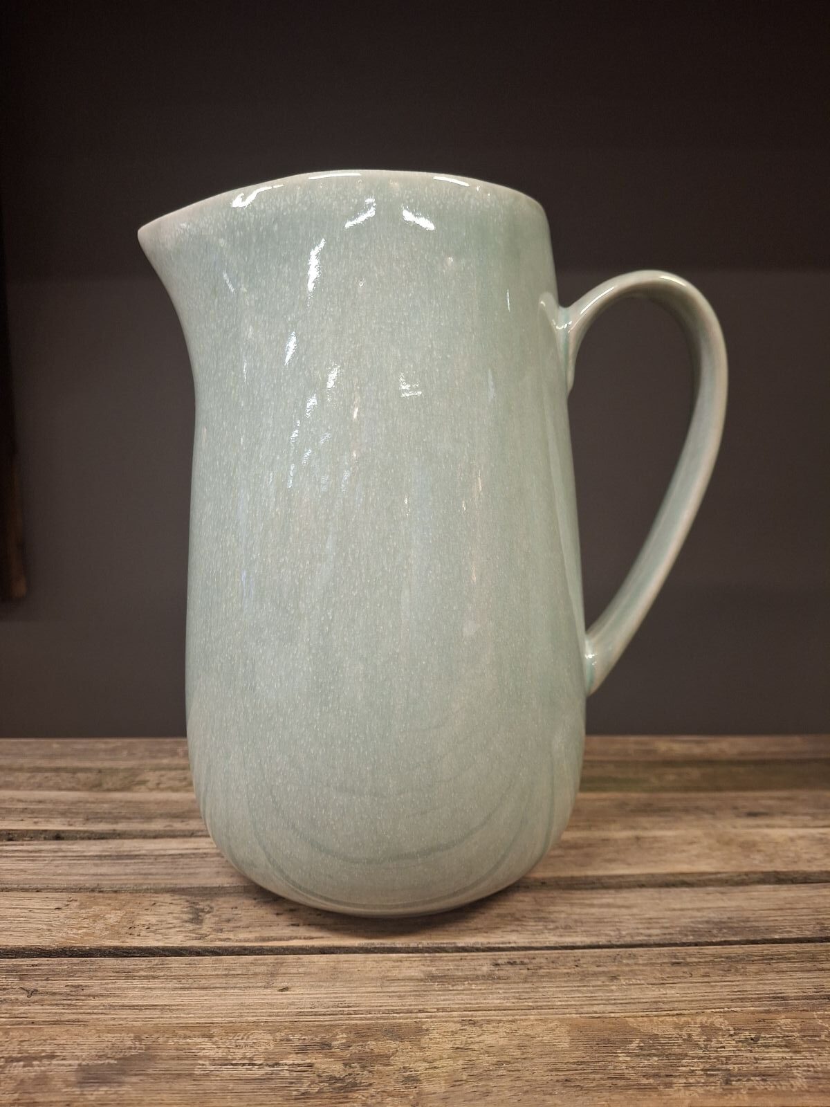 Smuk og stilren kande i glaseret porcelæn med en blød mintgrøn tone.