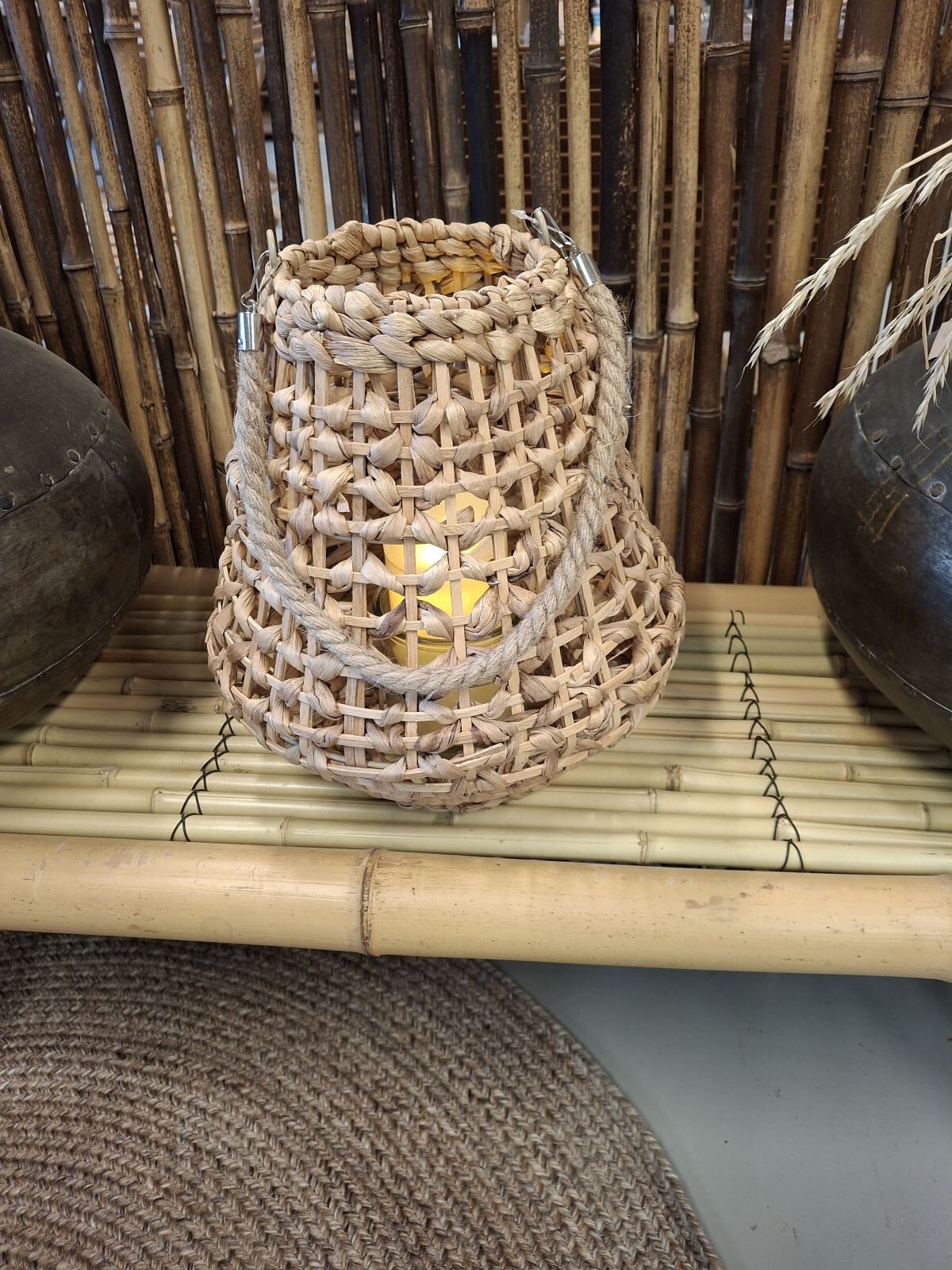 Lanternen af vandhyacint er 27cm bred og 30cm høj. Meget hyggelig og rigtig gode priser.