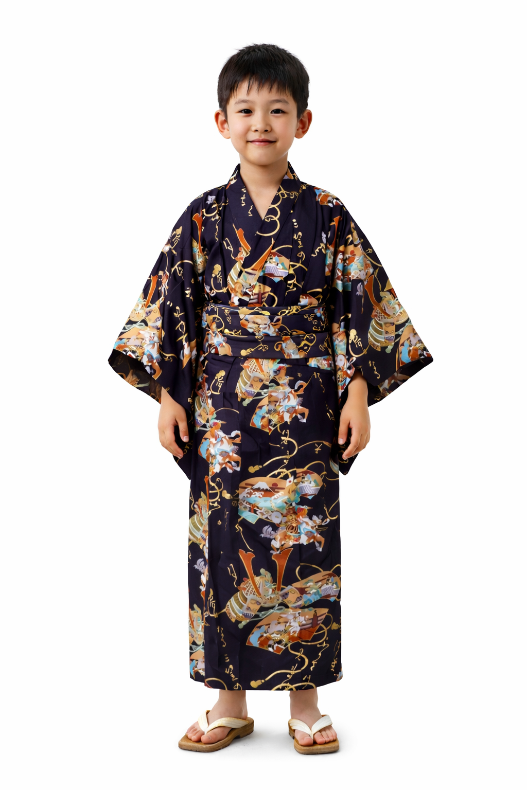 Yukata “Samurai Warrior” fra Kyoto til drenge. Fremstillet i sort bomuldssatin. Onesize – længde 150cm