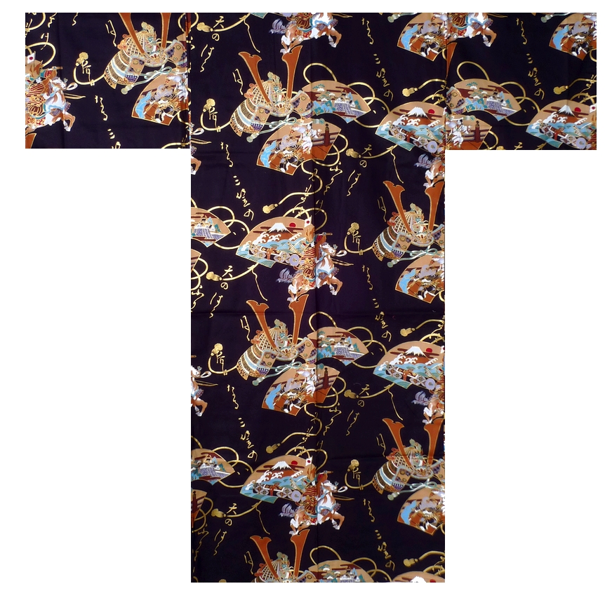 Herre yukata “Samurai Warrior” fra Kyoto. Fremstillet i sort bomuldssatin. Onesize – længde 150cm