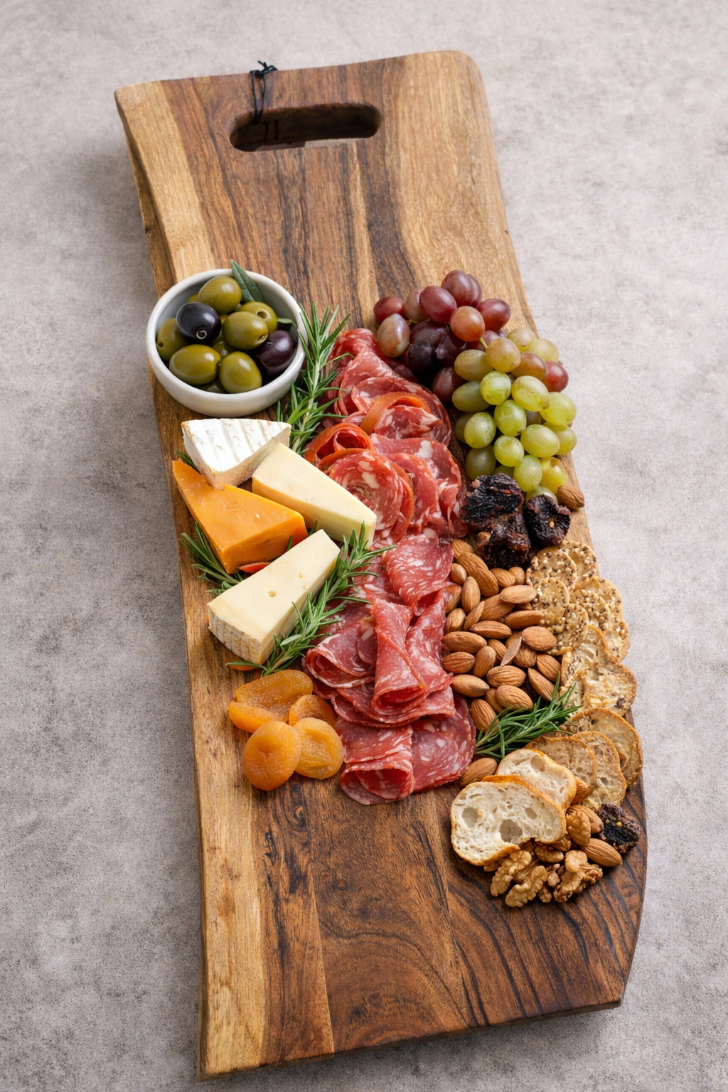 Smukt, naturligt og rustikt skærebræt fremstillet i massivt akacietræ.