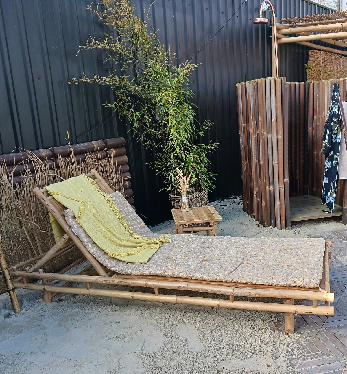 Solvogn med ryglæn der kan justeres. Vognen er 210cm i længden, og kommer uden hynde.