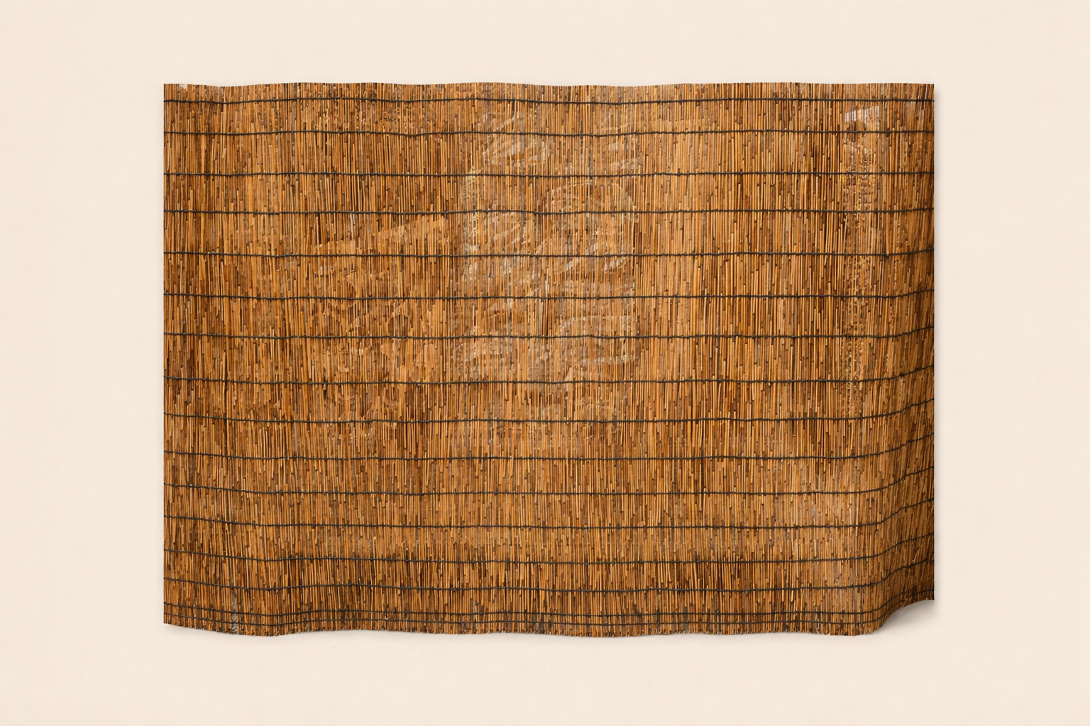 300cm lang og 150cm høj carboniseret stråmåtte samlet med galvaniseret ståltråd. Disse stråmåtter er mere gyldne i farven og af en højere kvalitet end alminelig stråmåtte.